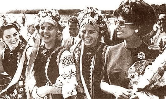 На згадку про Полтавщину Софі Лорен подарували полтавську (а саме решетилівську) вишиванку. Оригінальна сукня була створена на Решетилівській фабриці художніх виробів ім. К.Цеткін в народному стилі з домотканого полотна “білим по білому” з використанням кількох технік. Кажуть, що виріб був наскільки майстерно виконананий, що лицьову сторону практично неможливо було відрізнити від виворотньої! Гармонічне поєднання у витворі унікальних технік вишивки і довершеність ліній викликали щире захоплення Софі Лорен. Вона пообіцяла одягати подарунок для урочистих приводів.