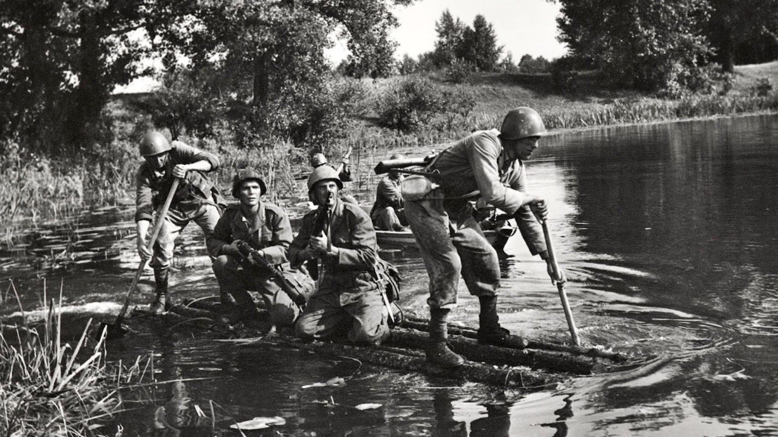Наймасштабніше фільмування відбувалося на узбережжі річки Ворскла. Тут відтворювали різні епізоди з воєнного часу: штурм мосту, танкова атака, стрілецькі бої на воді, переправа на човнах під бомбардуванням. Селяни згадували, що після двох тижнів кінобаталій вони настільки звикли до гуркоту вибухів та тріскотні кулеметів, що перестали звертати увагу на ці звуки.