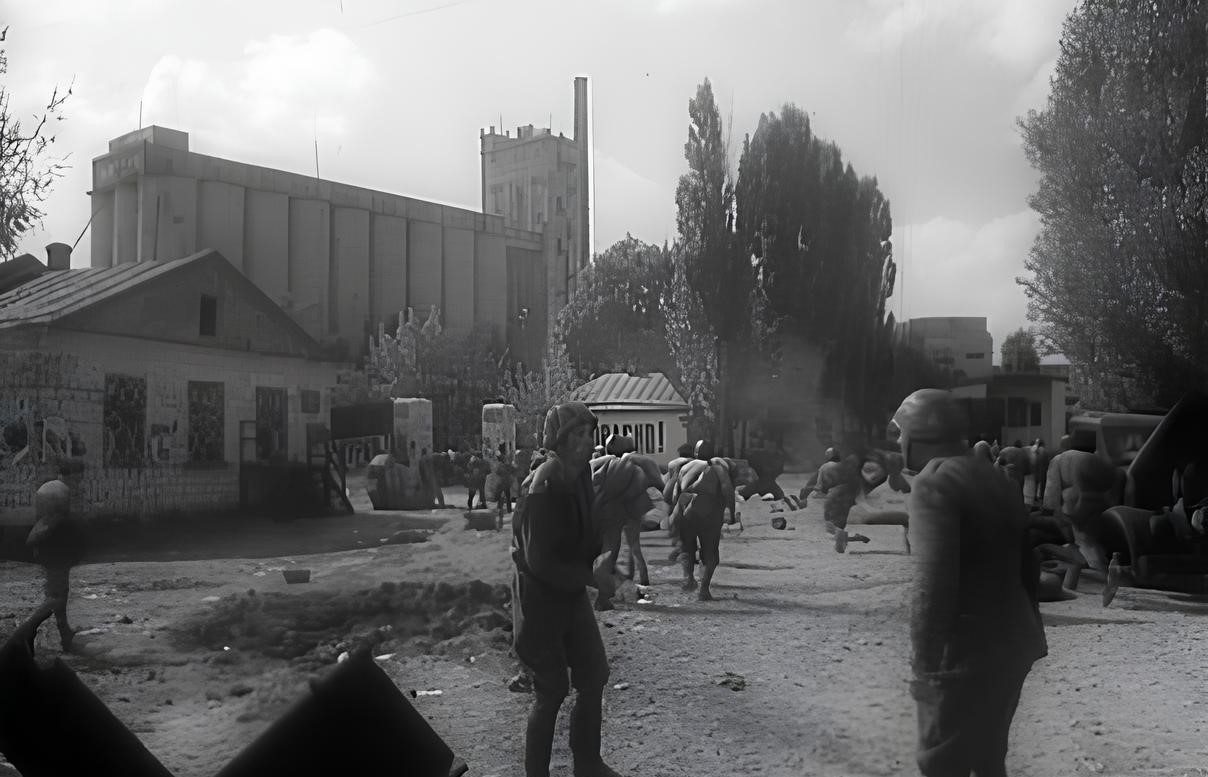 Найдивовижніше видовище, яке показали режисери в результаті міського фільмування в Полтаві — це руйнування борошномельного заводу. Насправді підприємство, звісно, не постраждало, але зображення грандіозної диверсії вийшло дуже ефектним.